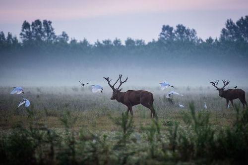 麋鹿不仅是迁徙高手,还是社交高手。它们喜欢群居生活,通常一个群体由一头雄鹿和几头雌鹿组成。在群体中,麋鹿会通过叫声、姿势等方式进行交流。